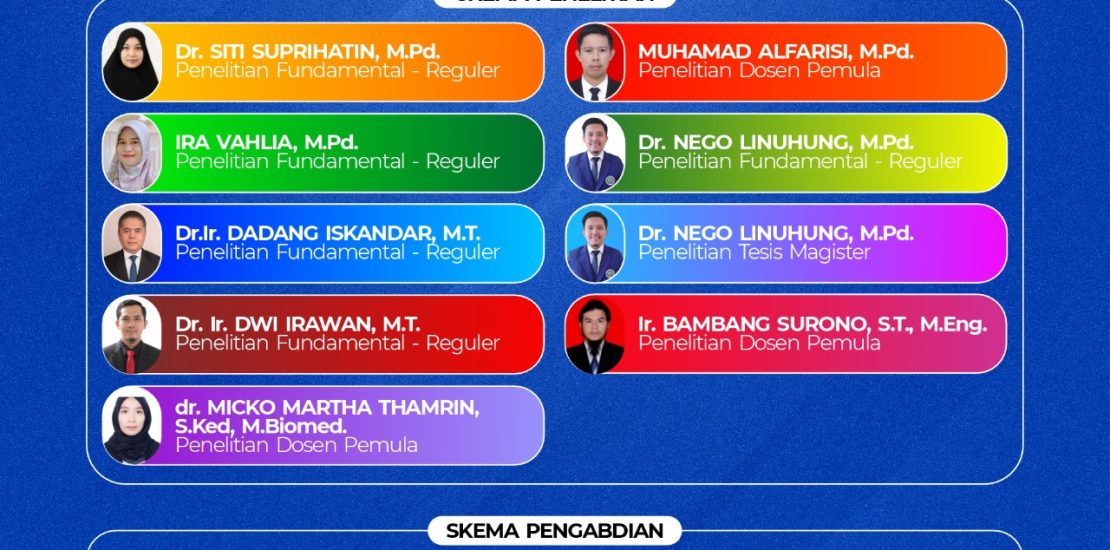 Keberhasilan ini mencakup berbagai skema kompetitif, di antaranya Penelitian Fundamental, Penelitian Dosen Pemula, Penelitian Tesis Magister, hingga program Pemberdayaan Kemitraan Masyarakat. Raihan tersebut mencerminkan kualitas sumber daya manusia yang mumpuni serta keseriusan universitas dalam mendorong inovasi dan kontribusi nyata bagi masyarakat.