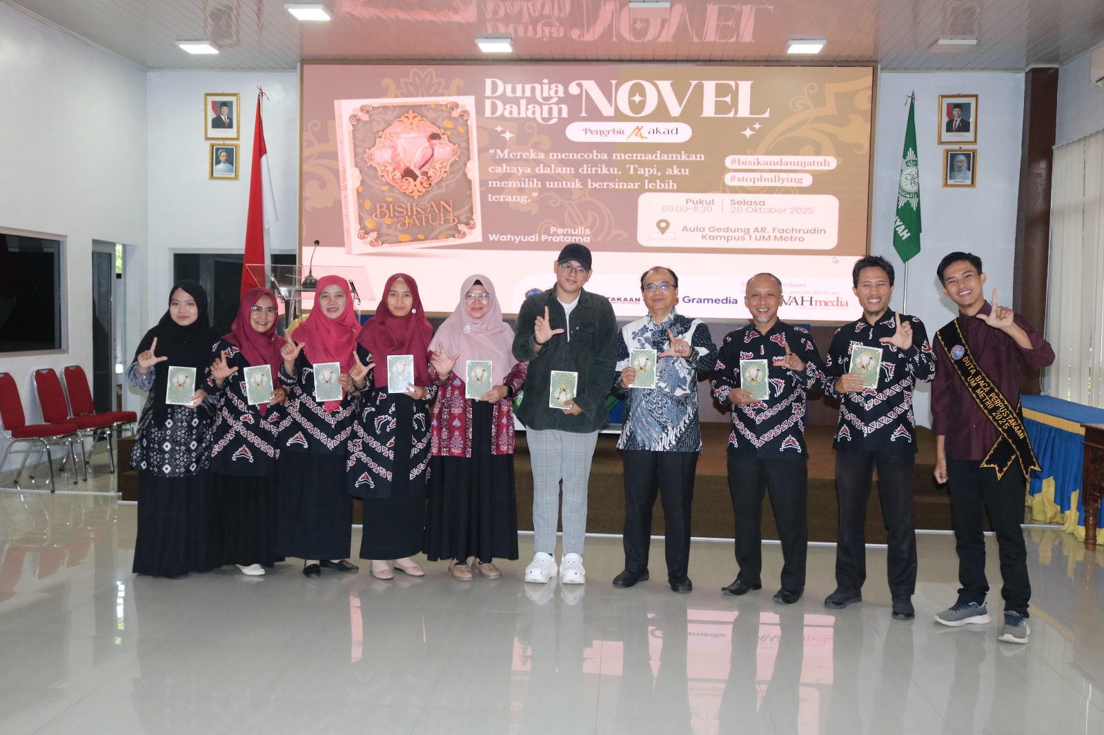 UM Metro | Di tengah maraknya kasus bullying di lingkungan pendidikan, Perpustakaan Universitas Muhammadiyah Metro menggelar kegiatan Bedah Buku bertajuk “Bisikan Daun Jatuh” karya Wahyudi Pratama. Aula AR. Fahruddin, Selasa, (28/10/2025).