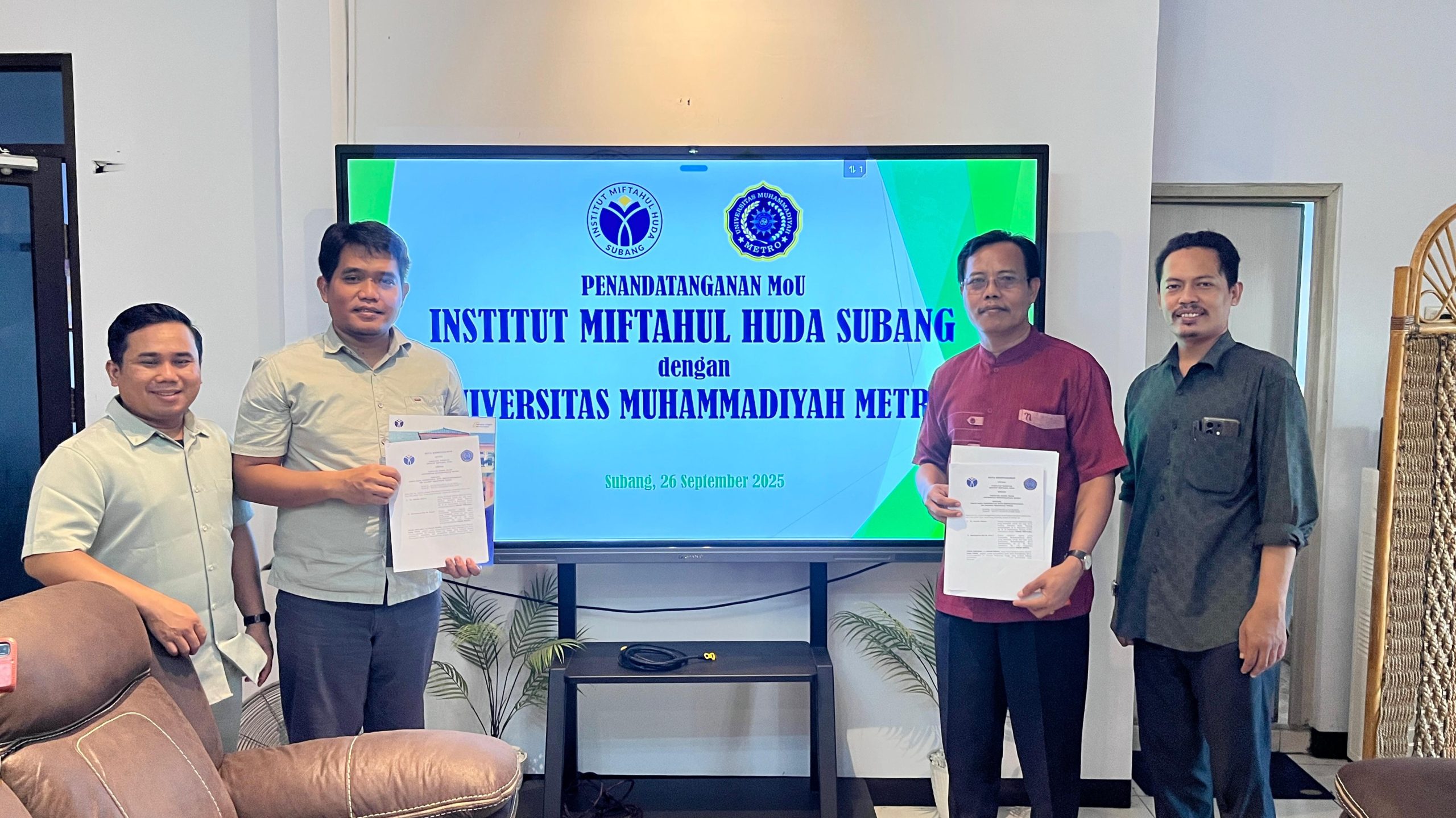 Subang, 26 September 2025– Universitas Muhammadiyah (UM) Metro menjalin kerja sama dengan Institut Miftahul Huda (IMH) Subang, Jawa Barat melalui penandatanganan Memorandum of Understanding (MoU) di Gedung rektorat IMH.