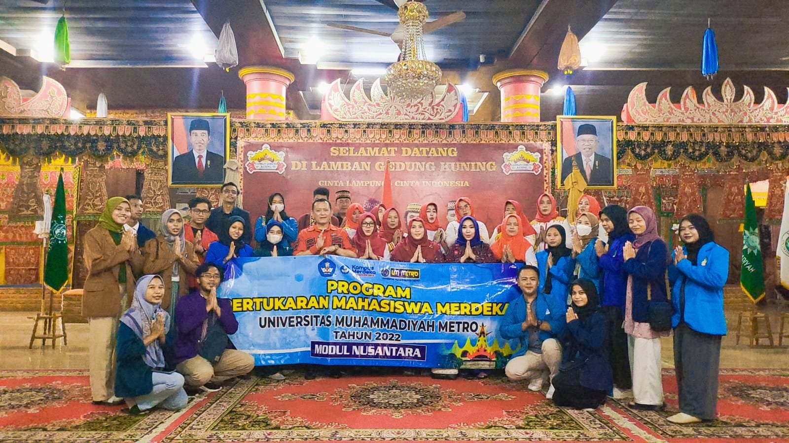 Program Pertukaran Mahasiswa Merdeka (PMM) Universitas Muhammadiyah Metro berkunjung ke Kerajaan Skala Brak di Lamban Gedung Kuning dalam rangka kegiatan Modul Nusantara, Senin (31/10/2022).