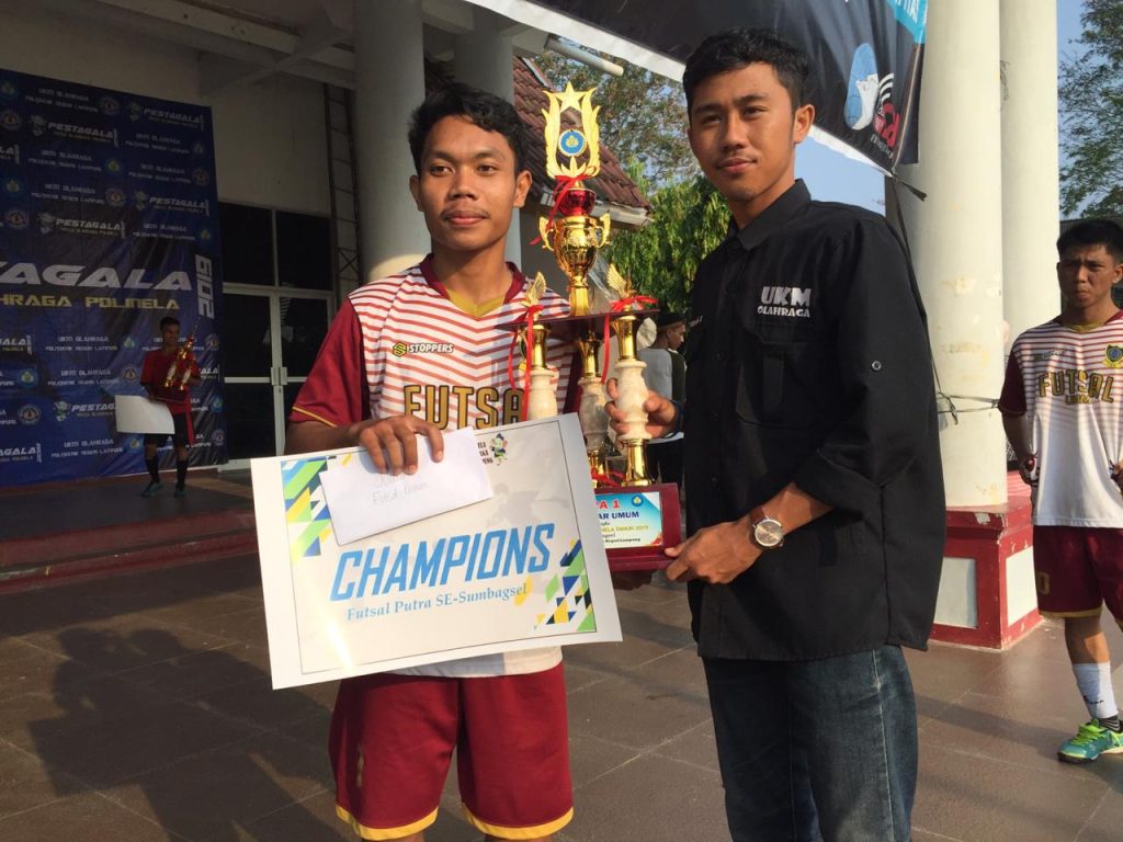 UM Metro – Kabar gembira kembali datang dari salah satu unit kegiatan mahasiswa (UKM) UM Metro yang bergerak dibidang olahraga. Setelah mampu mengalahkan berbagai tim futsal lainnya, UKM Futsal UM Metro akhirnya keluar sebagai juara satu di event Pesta Olahraga Polinela (PESTAGALA), pada 22-25 Agustus 2019, di lapangan kampus setempat.