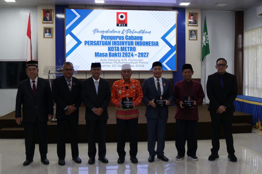 Metro, 20 September 2024 — Persatuan Insinyur Indonesia (PII) Cabang Kota Metro telah menggelar acara pengukuhan dan pelantikan pengurus baru untuk masa bakti 2024-2027. Acara berlangsung meriah di Aula Gd. A.R. Fachrudin Kampus 1 Universitas Muhammadiyah Metro, dihadiri oleh berbagai pihak dari kalangan akademisi dan praktisi teknik.