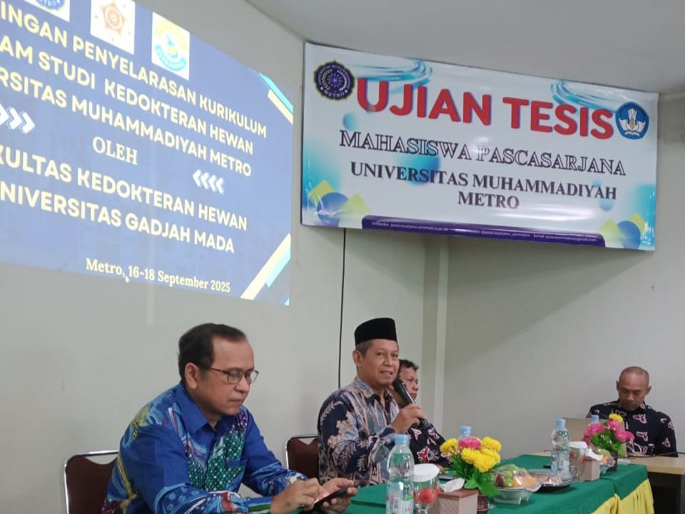 Lebih lanjut, Drs. Purwiro memaparkan profil lulusan yang diharapkan dari Prodi Kedokteran Hewan UM Metro, yakni mencetak dokter hewan klinis, manajer kesehatan dan produksi agroindustri, peneliti zoonosis tropis dan One Health, konsultan halal veteriner dan keamanan pangan, serta wirausahawan di bidang veteriner. Ia juga menambahkan bahwa unit pengelola prodi telah menyiapkan sarana utama, seperti ruang kuliah, ruang dosen, kantor, dan ruang administrasi.