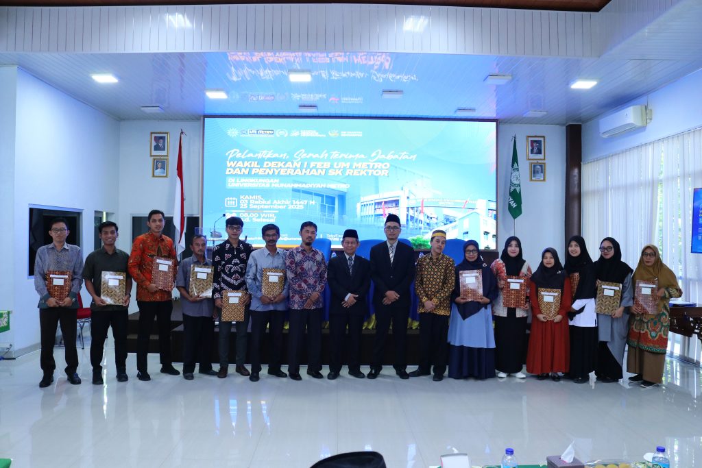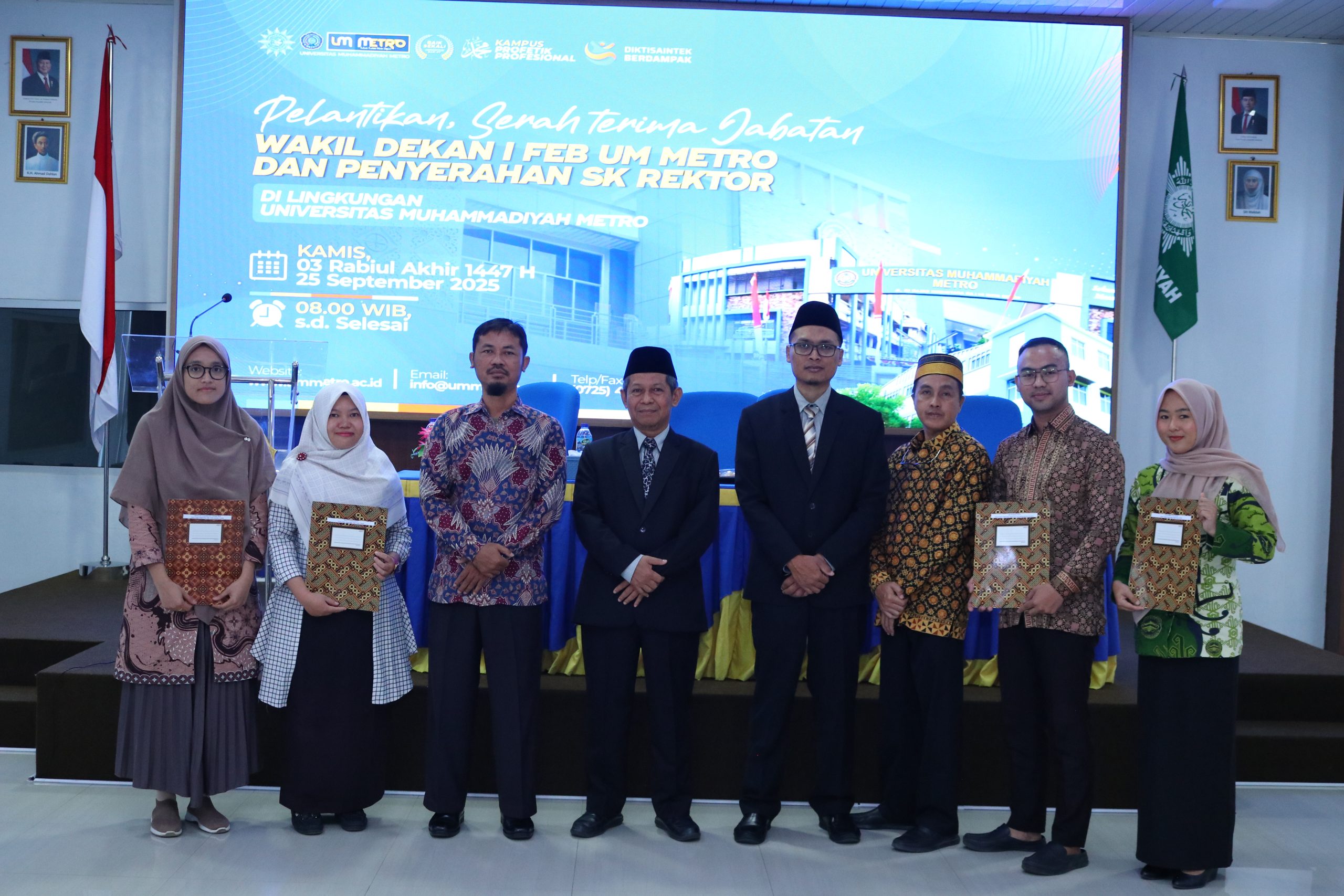 Metro, 25 September 2025 – Universitas Muhammadiyah Metro menggelar acara pemberhentian dan pengangkatan pejabat serta mutasi pegawai yang berlangsung di Aula AR Fachrudin. Acara ini dihadiri oleh segenap civitas akademika dan berbagai pihak terkait, termasuk Wakil Rektor I, Wakil Rektor II, Wakil Rektor III, Wakil Rektor IV, Direktur Pascasarjana, Direktur Vokasi, Dekan Fakultas FKIP, FEB, FT, FH, FAI, FIKOM, FIKES, FK, serta Wakil Dekan I dan II dari masing-masing fakultas tersebut. Tak ketinggalan, Ketua Lembaga, Kepala Biro dan Kepala UPT di lingkungan Universitas Muhammadiyah Metro.