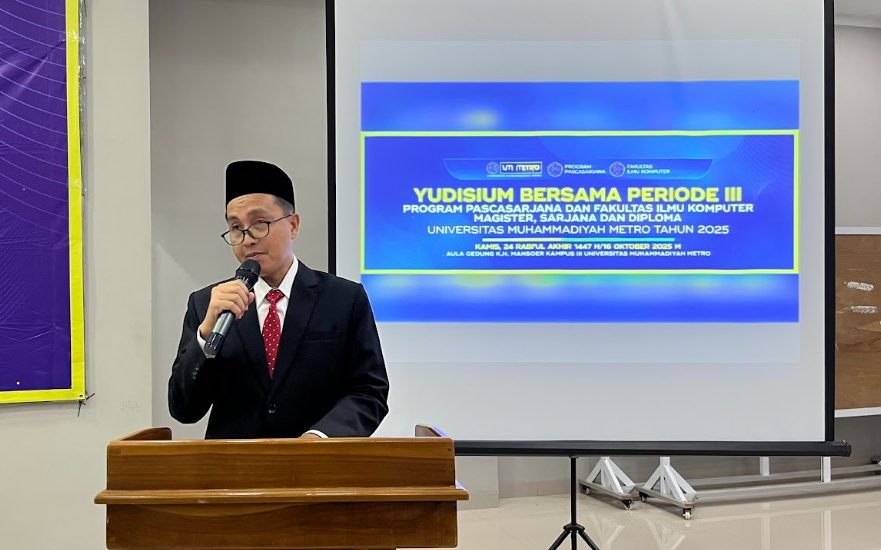 UM Metro – Sebanyak 97 mahasiswa Universitas Muhammadiyah Metro resmi diyudisium dalam Yudisium Bersama Periode III Tahun 2025 yang melibatkan Program Pascasarjana dan Fakultas Ilmu Komputer (FIKOM). Kegiatan yang berlangsung di Aula Kampus 3 UM Metro, Kamis (16/10/2025).